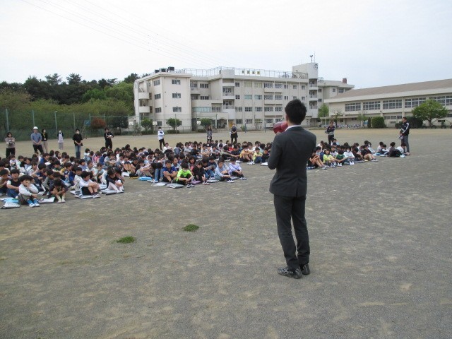 本日、理科準備室から火災が発生したという想定で、第1回避難訓練を実施しました。1年生は校庭の端から避難訓練の様子を見学し、2~6年生は実際に校庭に避難しました。子どもたちは「お・か・し・も」の約束を守って、落ち着いて避難ができていました。また、前方で話をする先生の方に、しっかりと体を向けて話を聞くことができていました。