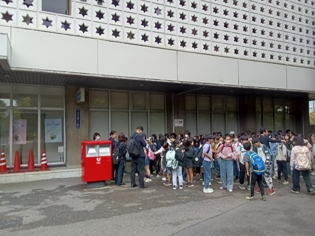 科学技術館に到着しました。予定より早く着いたので ちょっと早めのお弁当の時間にしていきます。
