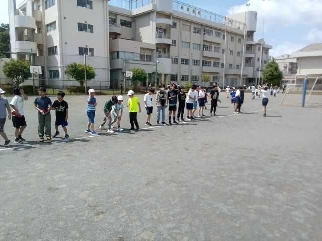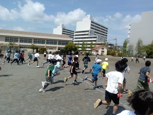 体育委員会の児童が考えた 休み時間のシャトルラン 会が行われました。