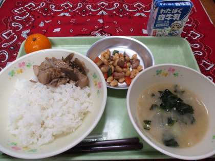 6月17日(木)の給食 公開日 2021/06/17 更新日 2021/06/17 給食室 ☆今日の給食☆ *やきとりどん *ごもくにまめ *こまつなのみそ汁 *くだもの(れいとうみかん) *牛乳 14日(火)〜21日(月)は「おはし名人になろう!ウィーク」です。 給食を食べながら5つの箸使いの習得に取り組みます。 3日目はごもくにまめの「まめをつまむ」です。 煮豆はつるつるしていてつまみにくいですが、 子どもたちは上手にはしを使ってつまむことができていました。 いいね(0)