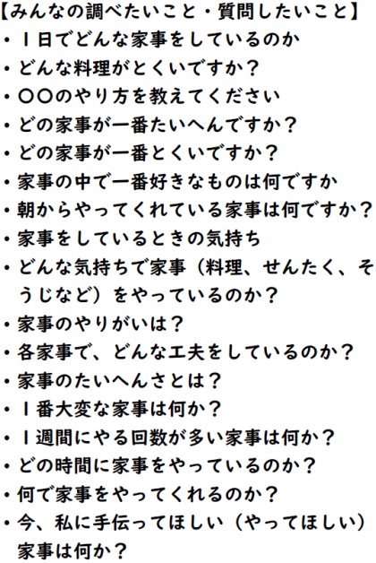 考えた末に、「お家の方に、家事について取材をしよう!」と考えました。
