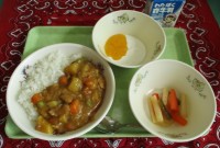 【メニュー】・カレーライス・野菜のピクルス・ヨーグルトのピーチソースかけ・牛乳【...