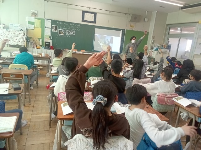 道徳の授業の様子です。よく手が上がります。友達が発言する時には発言する人の方を見...