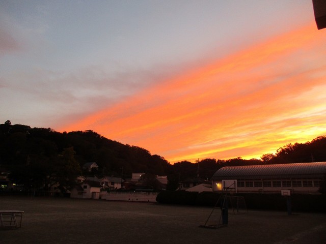 10月31日 きれいな夕焼け空 公開日 2025/11/04 更新日 2025/11/04 今日の出来事 10月最後の金曜日、きれいな夕焼け空が出ていました。職員室から何人かの先生たちとしばらく見上げていました。3連休が終わったらいよいよ11月です! いいね(0)