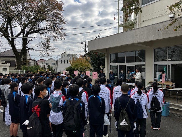 今回は、浅川中学校の栗山の下草狩りの活動も加わり、大勢の中学生が参加する中で行われました。浅川中学校の栗山は、本校の1年生が生活科の学習で何度も活動させていただいています。