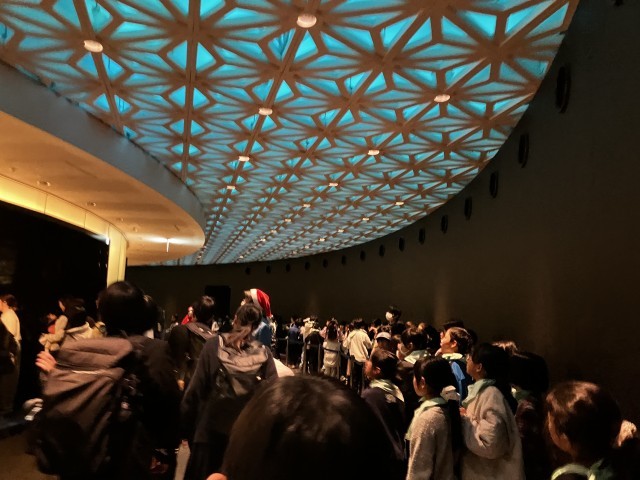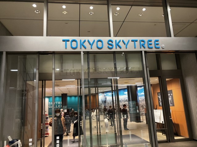 スカイツリーに着きました! 高すぎて近くからは全体像が見えません。これから高速エレベーターに乗って上がります。