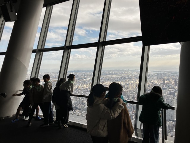 スカイツリーからの景色をみて様々な歓声が上がっていました。「すごーい!建物が小さく見える。」「浅川小は見えるかな?」「あそこはさっきの浅草寺かな?」… 自分の目で見て感じたこと、発見や疑問をもとに、これから社会の学習で深めてもらいたいと思います。