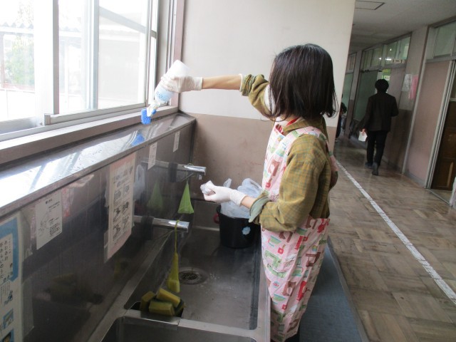 クリーン活動2日目です。今日は校内の手洗い場を中心に、念入りにお掃除をしてくださいました。