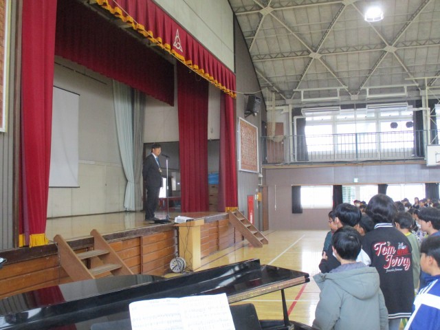 校長先生からは「季節の風物詩」についてお話をいただきました。日本にはその季節らしさを感じさせる様々な物事があります。今の季節は、新しい年を迎えるにあたり、年末の大掃除はもちろんのこと、除夜の鐘や新年の挨拶、おせち料理やお正月の遊びなどです。