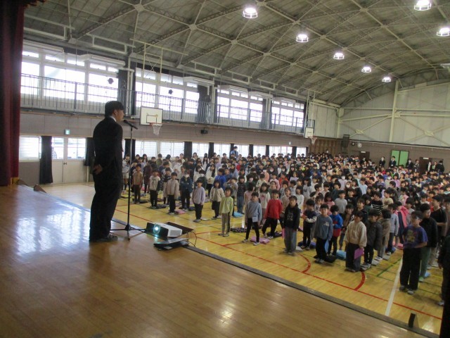 今日は2学期の終業式です。時間より前に体育館に集合し、整列を完了するクラスが多く、副校長先生からもお褒めのお言葉をいただきました。