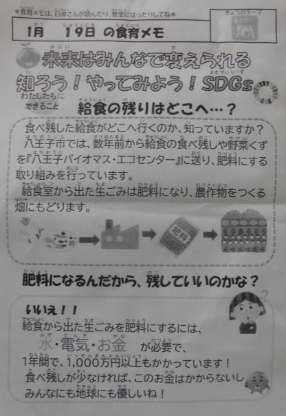 全国学校給食週間の実施について 1/24~1/30