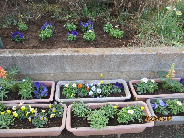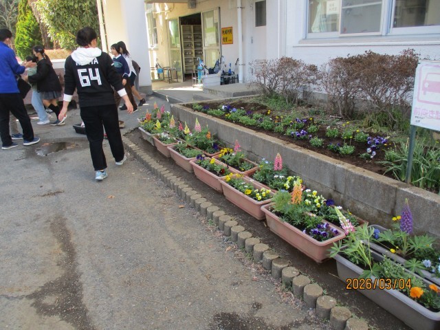 飼育委員会の子どもたちが、地域利用室前の花壇に沢山の花を植えていました。2月28日(土)の「花いっぱい運動」で、プランターに植えきれなかったお花です。春のやわらかい日差しに照らされ、美しく植えられたお花のそばで、飼育委員会の子どもたちは「手が真っ黒になったよ!」「お花に名前を付けた!」と、何故かとても嬉しそうでした!