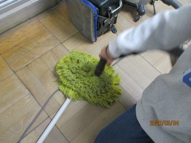 今日の委員会活動では、環境委員会の子どもたちが校内のモップを集め、掃除機で細かいごみを吸い集めてきれいにしていました。
