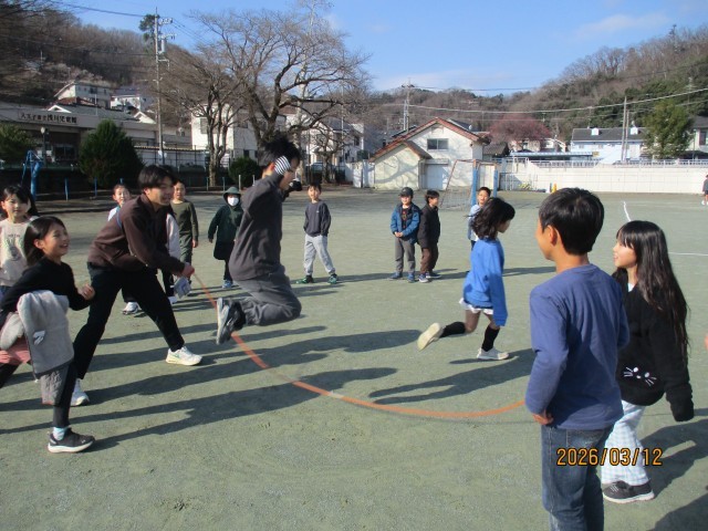 さわやかな朝です。今朝は各クラスに分かれ、長縄集会が行われました。