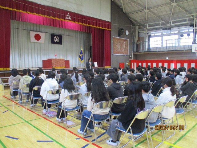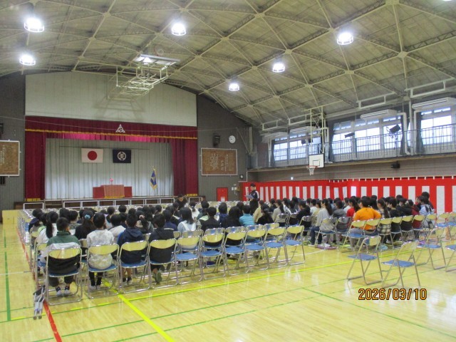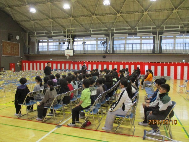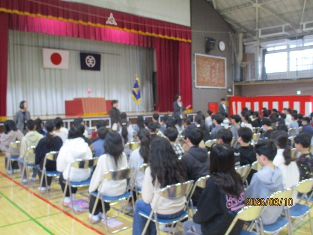 3月6日(金)の「6年生を送る会」の後、5年生が会場設営を行い、あっという間に卒業式の会場が出来上がりました。