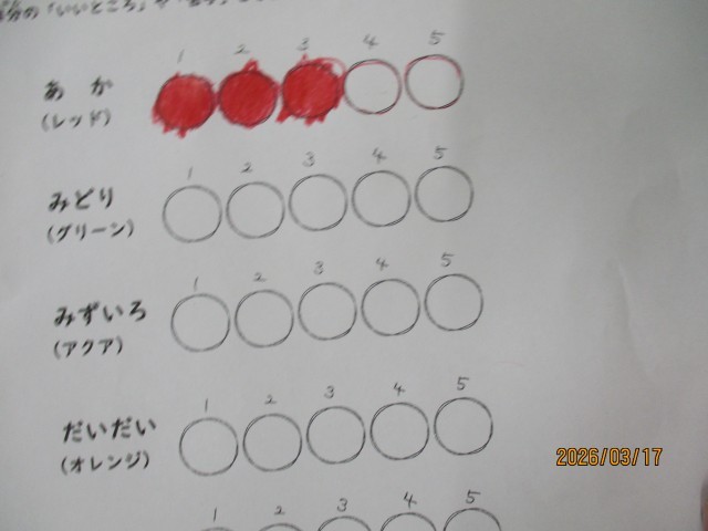 その後、「あなたはナニイロ?」という教材を用いて、自分の個性について学びました。