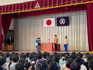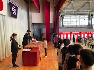クラスの代表の子どもたちが、修了証をみんなの前で、壇上で受け取りました。