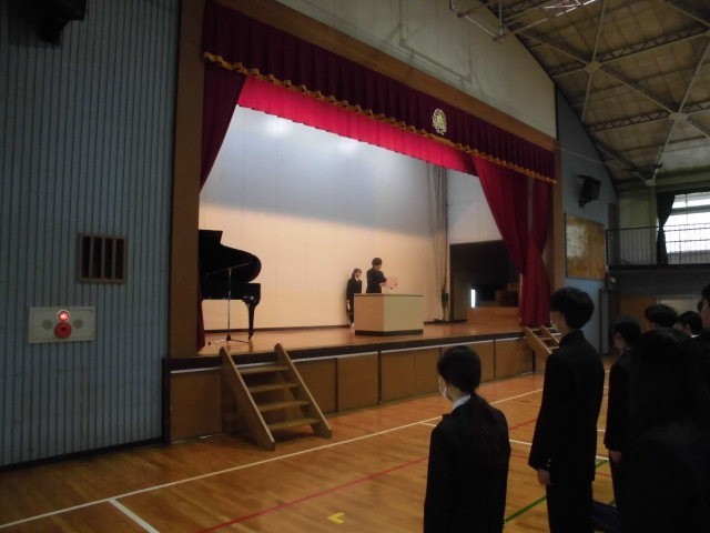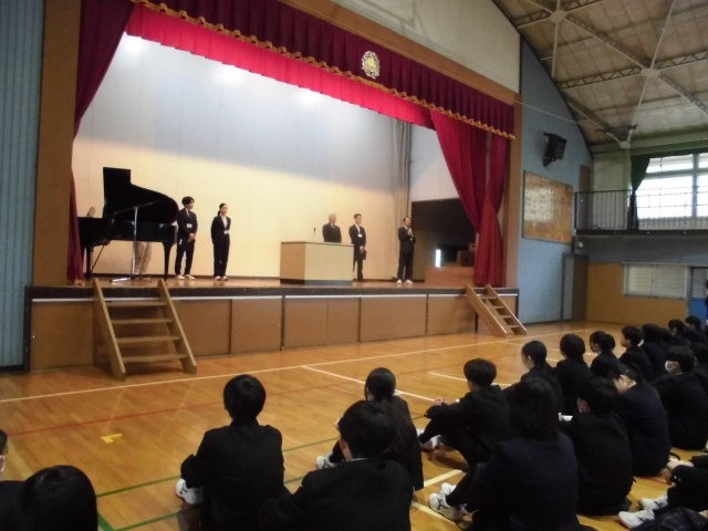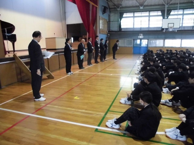 2年生、3年生代表生徒から1学期の抱負の発表の後、校長講話、着任教員の挨拶、学年教員紹介がありました。