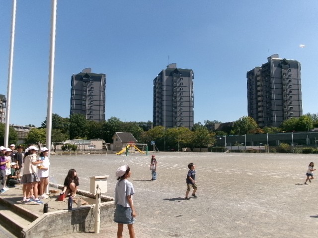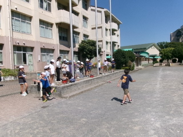 勢いよく飛ぶと歓声が沸き、失敗しても笑い声が起こっていました。とても楽しそうに取り組んでいました。