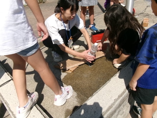 そのまとめ、発展学習としてペットボトルロケットを飛ばす実験を行っていました。