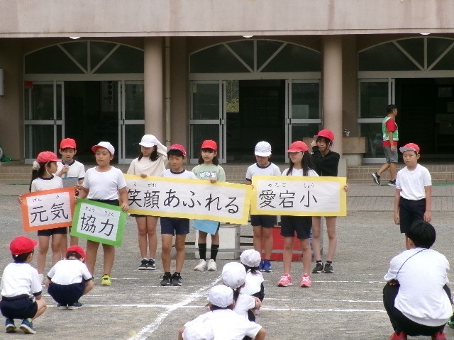 今年の愛宕小のスローガン「元気 協力 笑顔あふれる愛宕小」が運動会でも実現するためには、というお話がありました。
