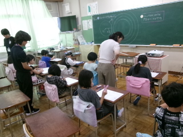 3年生は今、算数でコンパスを使っています。