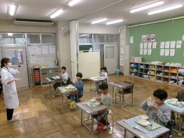 今日は栄養士の先生がとちのみ学級さんにお話に来ていました。