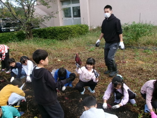 今日は1,2校時に2年生がサツマイモ掘りを行いました。