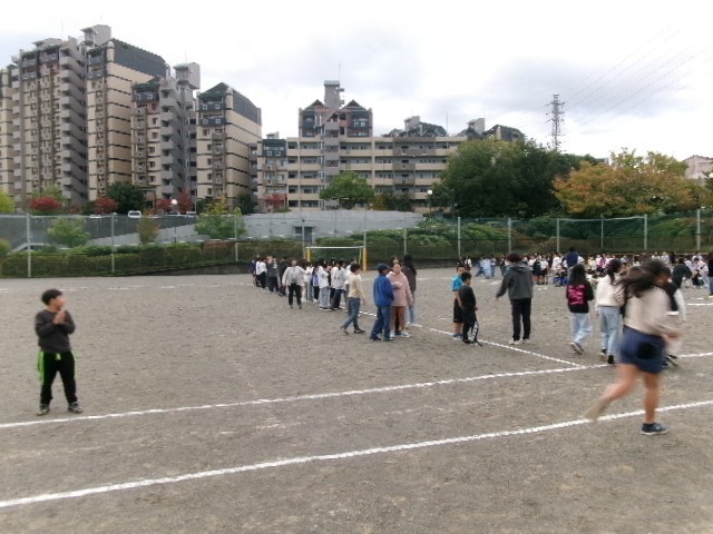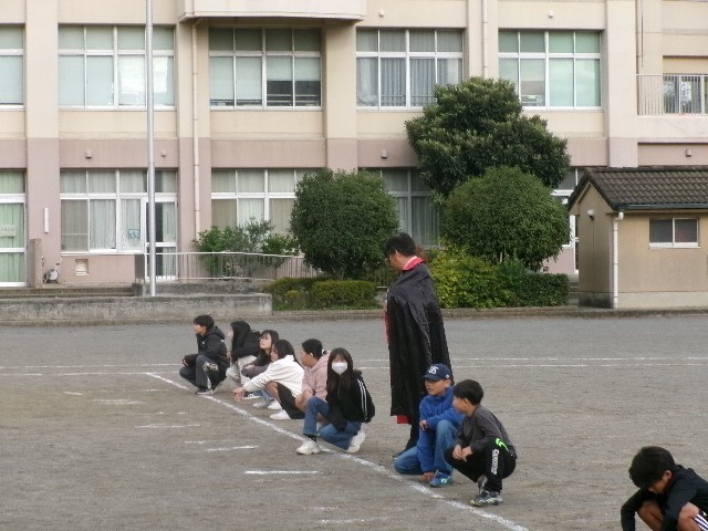 ゲームは「ピラミッドじゃんけん」です。6年生や先生方、委員会の児童など勝った人はどんどん進みます。