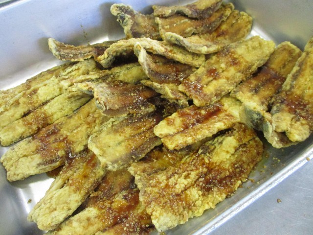 また、さんまはカリッと油で揚げた後、あまじょっぱいたれをかけて出しています。