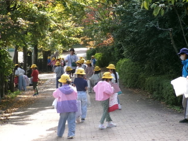 今日の3,4時間目は1年生が学年で上柚木公園に出かけて、秋探しを行いました。