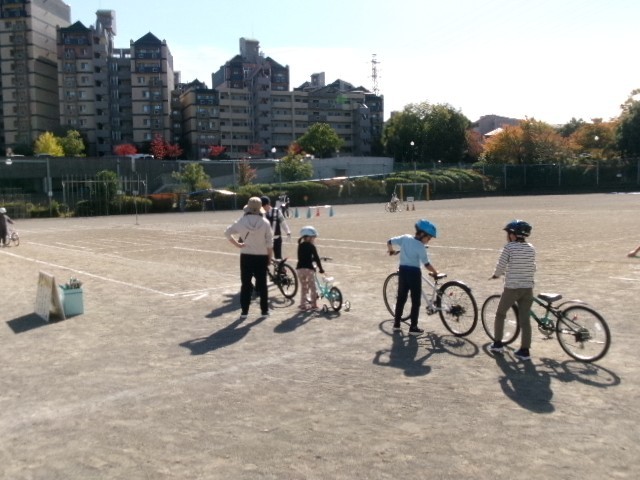 警察の方から安全な乗り方や危険な乗り方についてのお話を伺った後、実際に自転車に乗って安全な運転の仕方を確かめました。