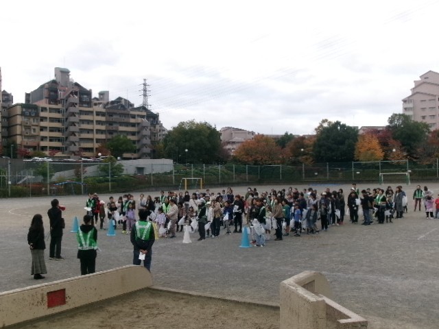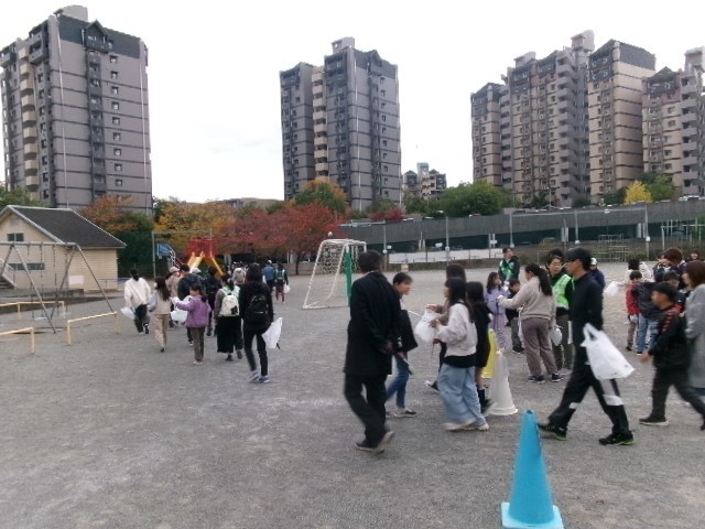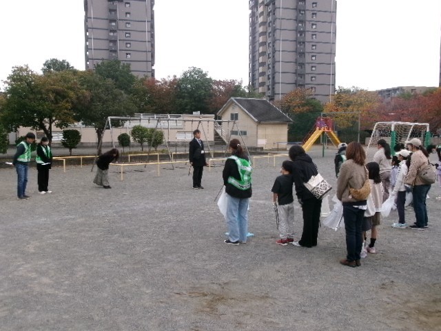 各コースに分かれて学区内を回り、ごみ拾いを行いました。