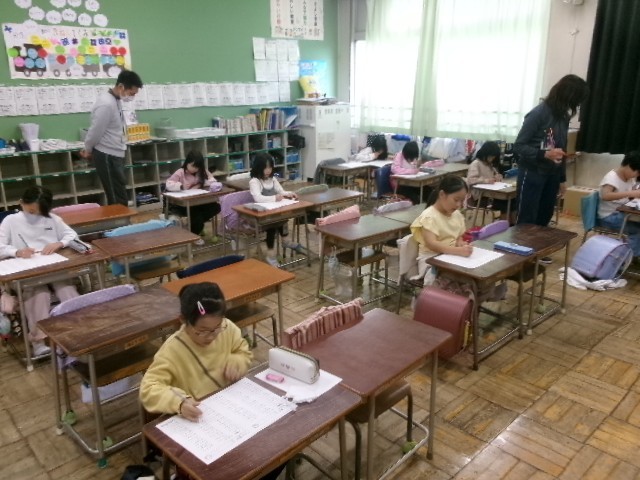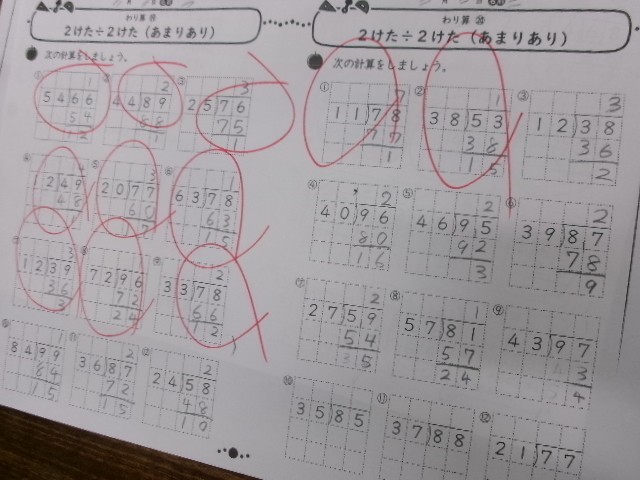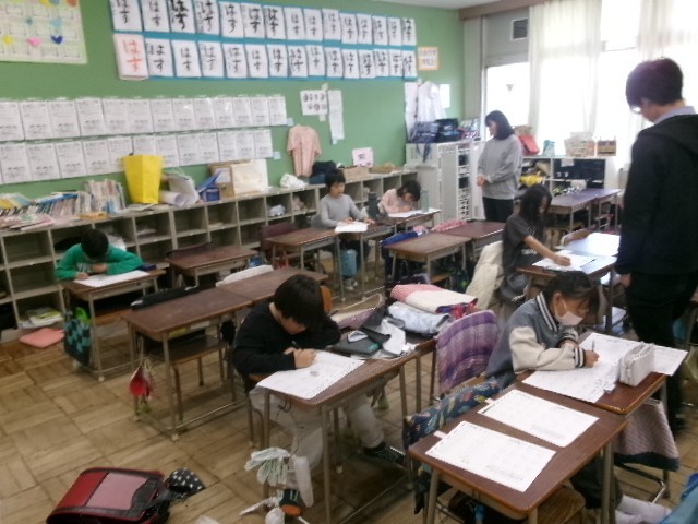 3・4年生は扱う数の大きさは違いますが「あまりのあるわり算」、5年生は「面積」、6年生は「比例」「文字と式」の復習に取り組んでいました。