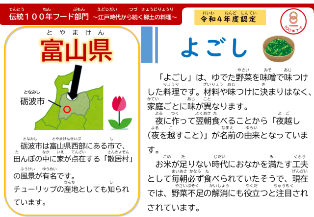 夜に作って朝食べることから、「夜越し(夜を越すこと)」が名前の由来になっています。