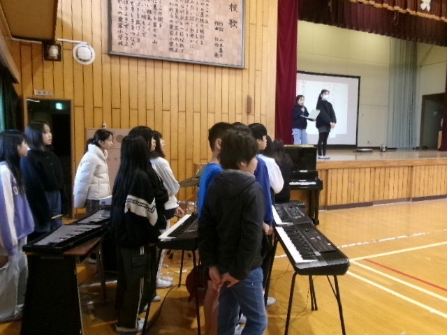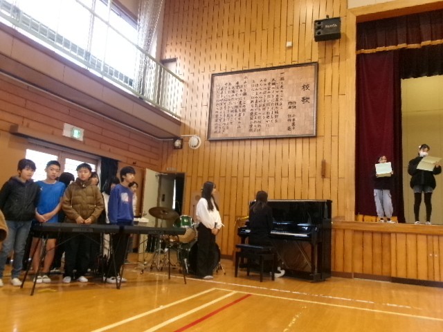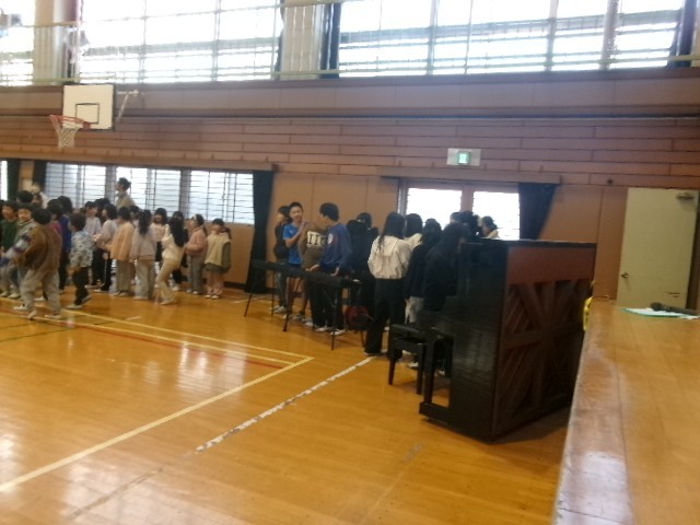 今朝は体育館で音楽集会が行われました。音楽集会の児童の演奏で「命のオーケストラ」という曲をみんなで歌いました。きれいな歌声が体育館に響いていました。