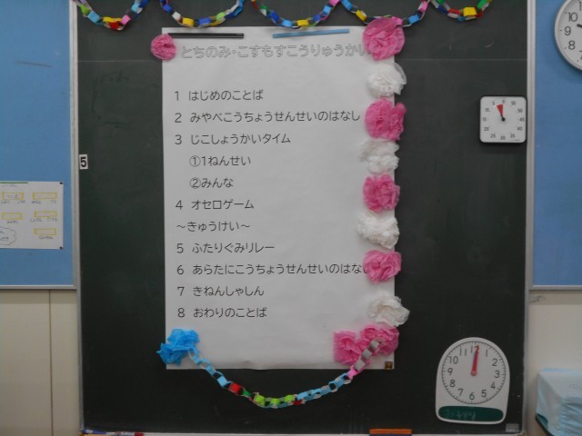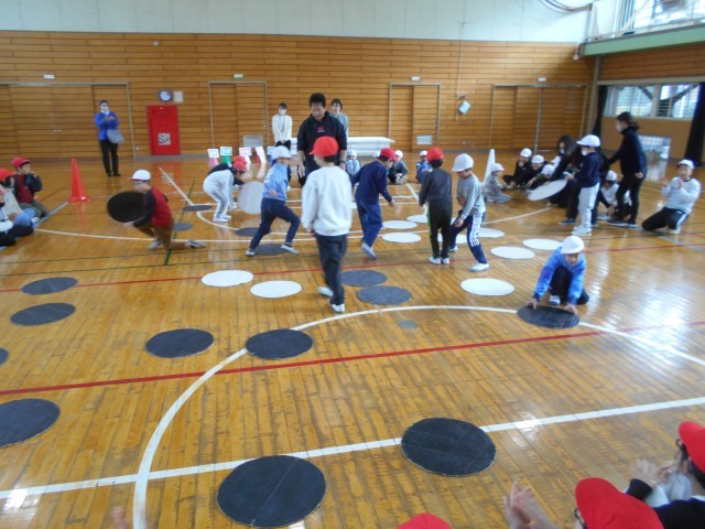 はじめの会の後、ビッグオセロやリレーなどを行いました。普段とは違うお友達と楽しみながら交流することができました。