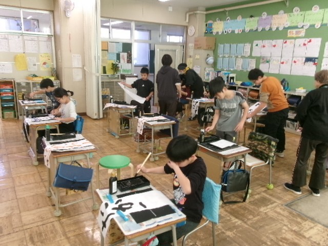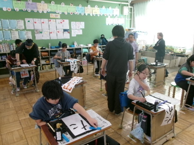 どの子も先生の説明やアドバイスをしっかりと聞いて丁寧に書き上げていました。また、書写展の際にご覧ください。