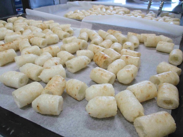 今日は給食用に少し小さめにカットしたものを、オーブンでカリッと焼いて給食に出しました。