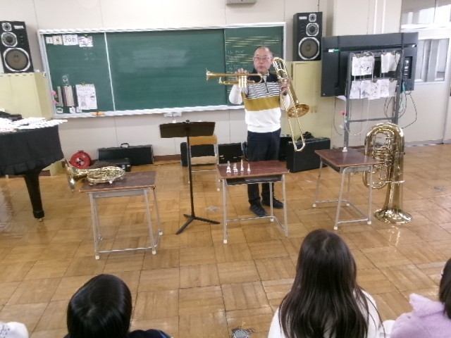 今日はトランペットやトロンボーン、チューバなど金管楽器について紹介してくださいました。