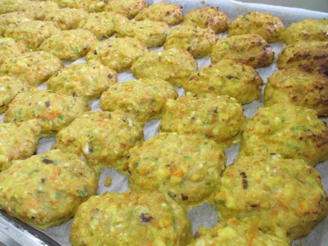 今日はにんじんや干ししいたけ、たまねぎ、ねぎ、卵を混ぜたものをオーブンで焼いています。