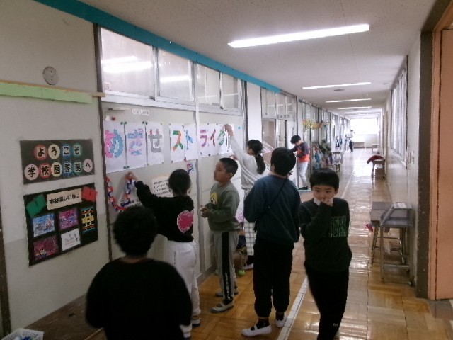 明日は愛宕フェスティバルがあります。6校時は3~6年生は準備を行っていました。