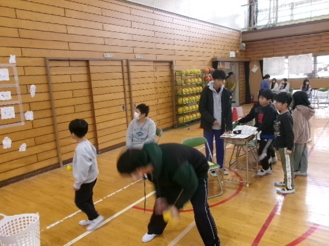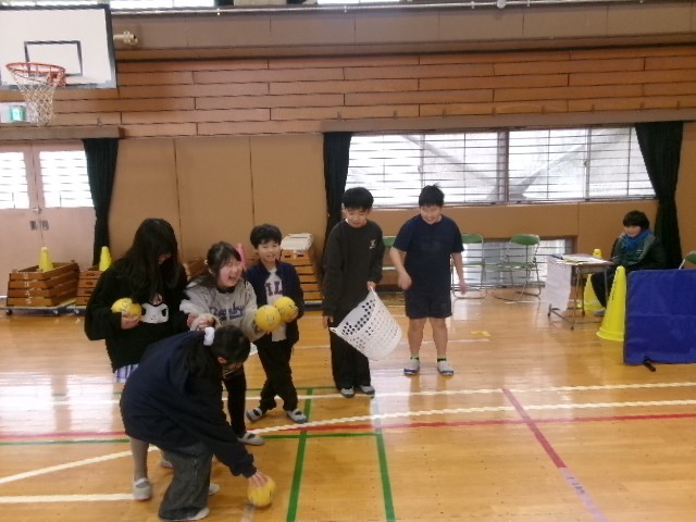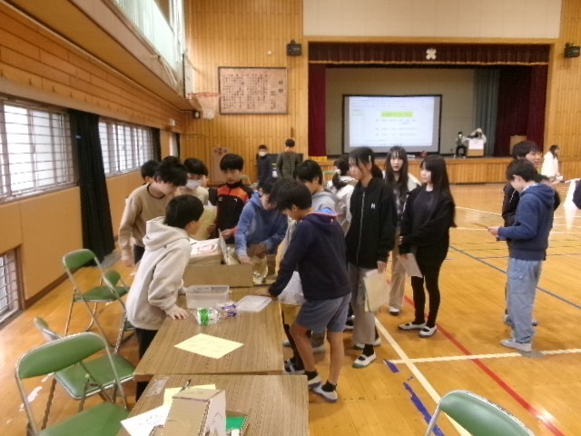 6年生は体育館でお店を開いています。大繁盛です。