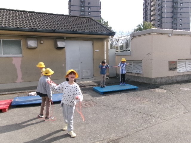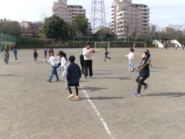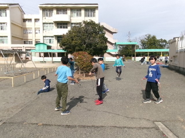 B時程の短い休み時間にも各学年外に出て縄跳びに取り組んでいました。