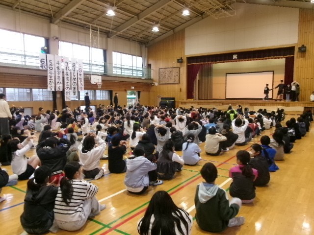 今日は雨だったので体育館でクイズ集会が行われました。