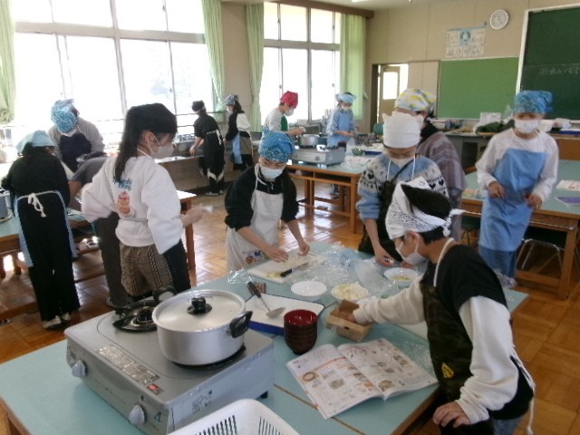 3,4時間目は5年生が調理実習を行っていました。お味噌汁を作っていました。