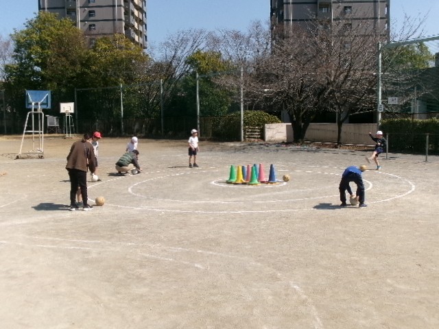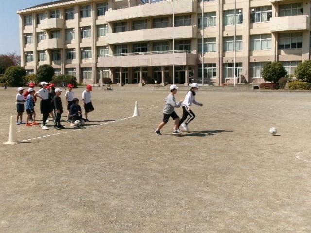 ボール蹴りやサッカーにつながる運動を行っていました。とても楽しそうに取り組んでいました。