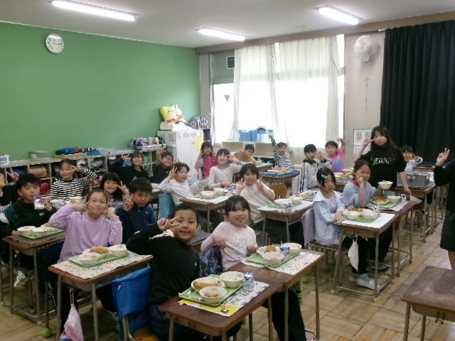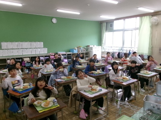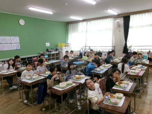 みんなうれしそうに食べていました。(時間の関係で全部のクラスを回れませんでした。他のクラスはまた別の日に見に行きます。)