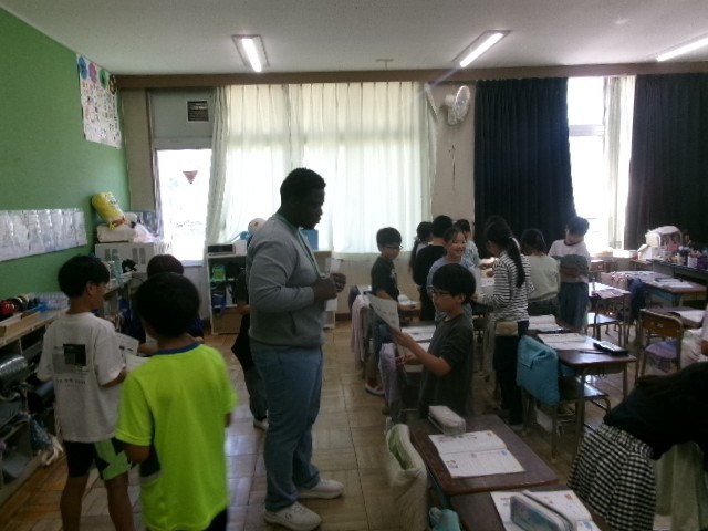 今日は456年生の授業に入っていただきました。また、休み時間には6年生とサッカーで遊んでくれていました。