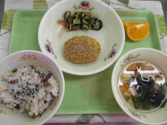今日は1年生の入学と、在校生の進級をお祝いする「お祝い献立」でした